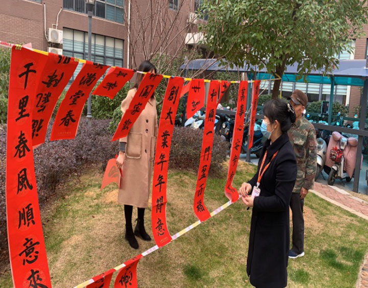 一大早,贛州城投集團振興實業(yè)公司黨支部的黨員、入黨積極分子來到創(chuàng)業(yè)家園小區(qū),有的與部分租戶一起掛上燈籠和中國結(jié),營造濃厚的節(jié)日氛圍;有的組織書法志愿者為租戶送春聯(lián)、“?!弊?/span>;有的組織醫(yī)護志愿者為租戶開展免費量血壓、血糖、提供醫(yī)藥建議等義診活動。