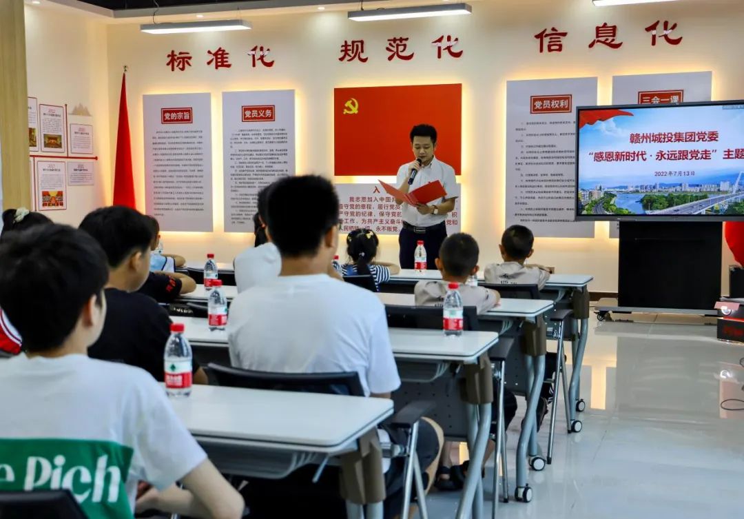 在集團黨性教育體驗室,由集團機關(guān)一支部的黨員代表為孩子們精心準備了紅色傳承系列活動,黨員們深情朗誦了方志敏的《可愛的中國》,講述了紅色故事《八子參軍》,合唱了《沒有共產(chǎn)黨就沒有新中國》,并陪伴孩子們一起觀看了紅色影片《建黨偉業(yè)》,進一步增進孩子們對黨的歷史的了解,深切體會當今美好生活的來之不易。臨別時,贛州城投集團團委也給孩子們分別贈送了小禮物。