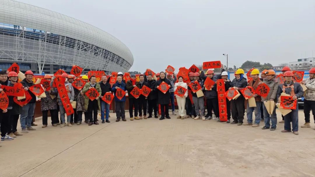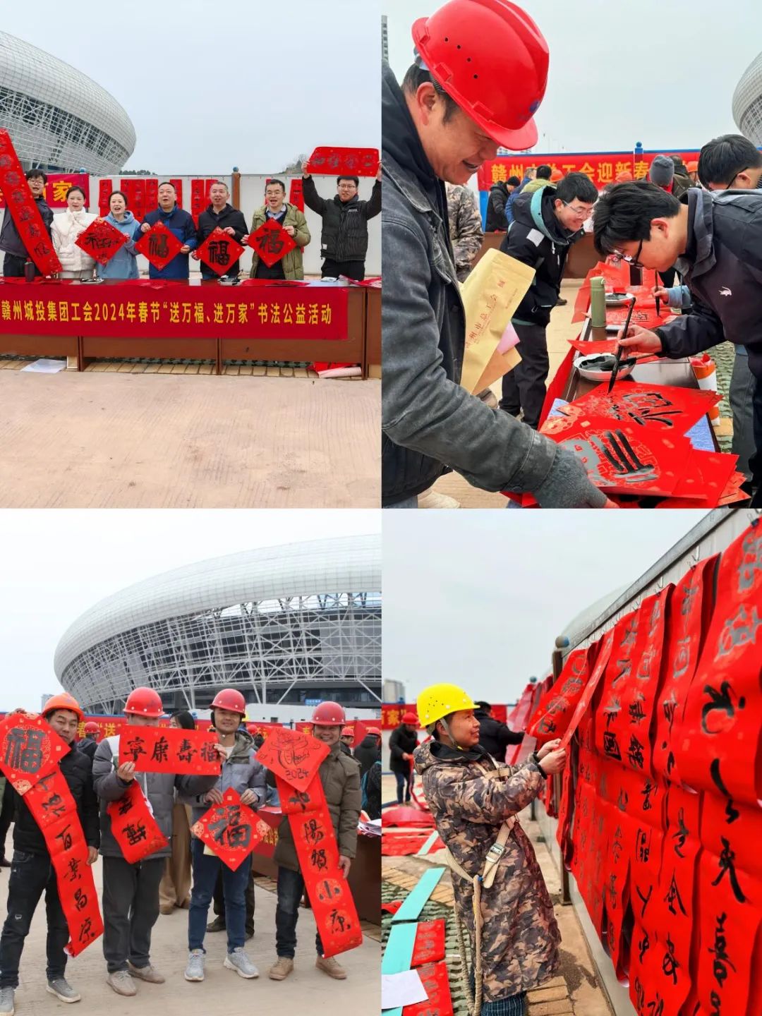 1月25日,贛州市總工會(huì)、贛州城投集團(tuán)工會(huì)在贛州市全民健身中心一期項(xiàng)目工地開展迎新春“送萬福、進(jìn)萬家”書法公益活動(dòng),為在寒冬里堅(jiān)守崗位的一線工人書春送福,送去工會(huì)“娘家人”的關(guān)懷溫暖,為2024年春節(jié)營造歡樂吉祥的節(jié)日氛圍。