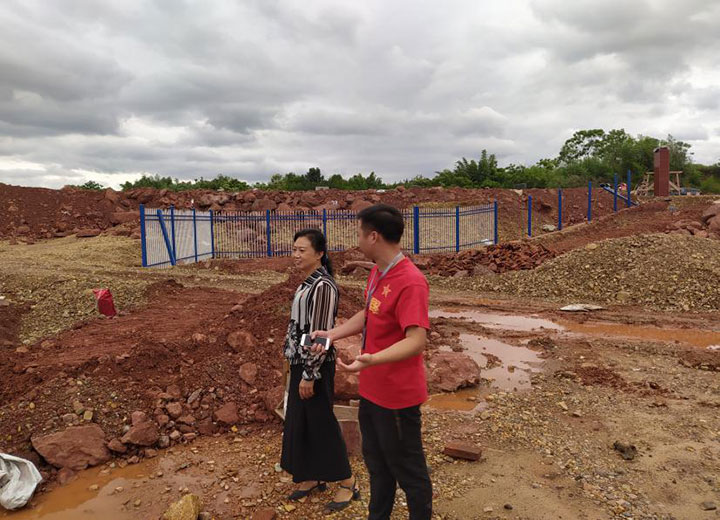 (上圖為謝健在現(xiàn)場(chǎng)協(xié)調(diào)砂石堆場(chǎng)建設(shè)工作。)