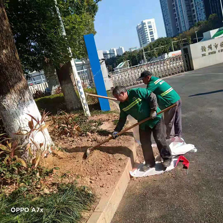 在贛州中心城區(qū)各公園、廣場、道路等地,生態(tài)投資公司組織生態(tài)環(huán)境公司的管養(yǎng)人員開展落葉清掃、樹木栽植、花草樹木澆灌等工作。