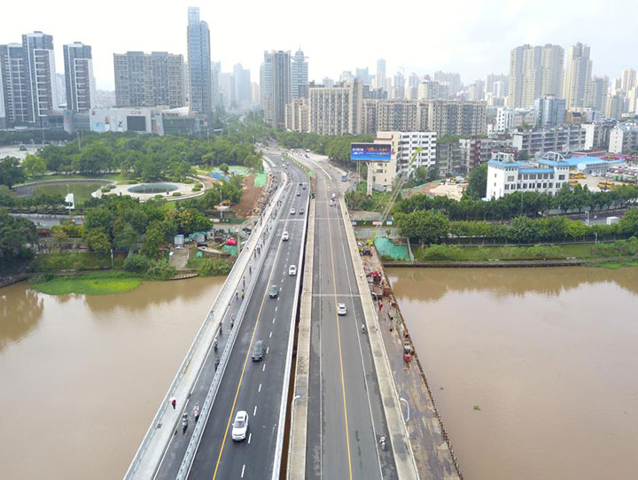 贛南大道高架路新世紀(jì)大橋立交段通車。