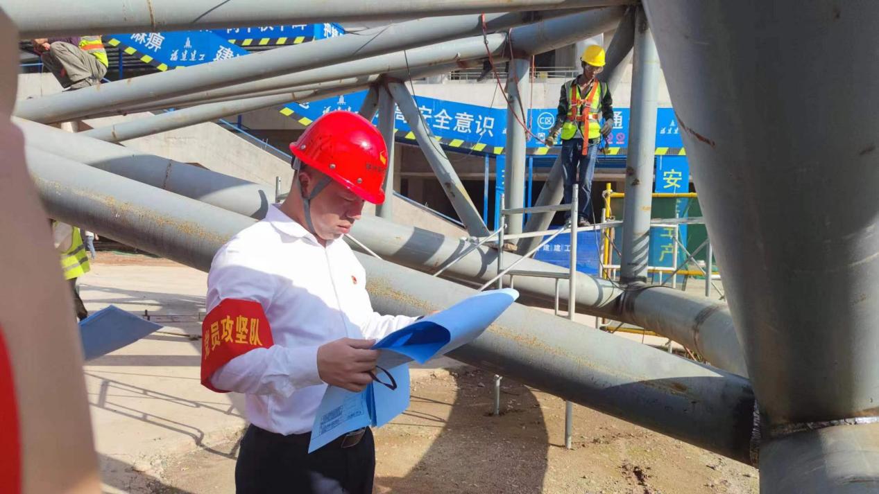鋼結(jié)構(gòu)工程作為全民健身中心一期項(xiàng)目的重點(diǎn)組成部分,主要由屋蓋主桁架、環(huán)向結(jié)構(gòu)、環(huán)向支撐及支撐柱等部分組成,施工難度大、最高59.7米,頂部向內(nèi)場最大懸挑39m。為了保障鋼結(jié)構(gòu)施工進(jìn)度,作為項(xiàng)目經(jīng)理的梅敏始終堅(jiān)守在項(xiàng)目建設(shè)一線。在2022年6月,他因病需要手術(shù),醫(yī)生多次叮囑催促要盡快完成手術(shù),但由于項(xiàng)目施工工期緊張,他一拖再拖,就是放心不下項(xiàng)目建設(shè)工作。直到項(xiàng)目進(jìn)度取得一定成效,他才放下工作住院接受手術(shù)。令同事驚訝的是,剛做完手術(shù)的他,沒過幾天又主動(dòng)回到了工作崗位上,強(qiáng)忍著身體上的不適,繼續(xù)和各方確認(rèn)工作進(jìn)度。項(xiàng)目同事勸他多休息幾天。他毫不猶豫地說“沒事的,我可以”。