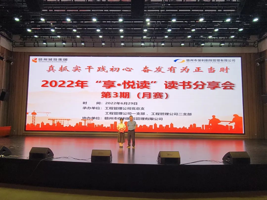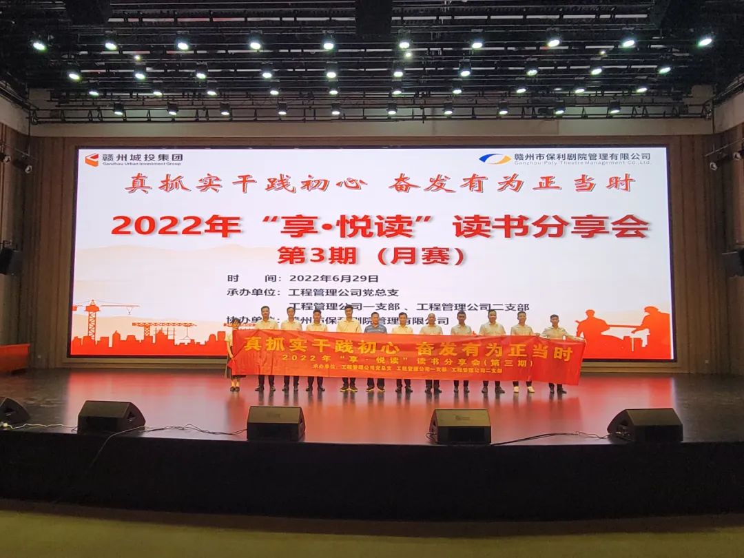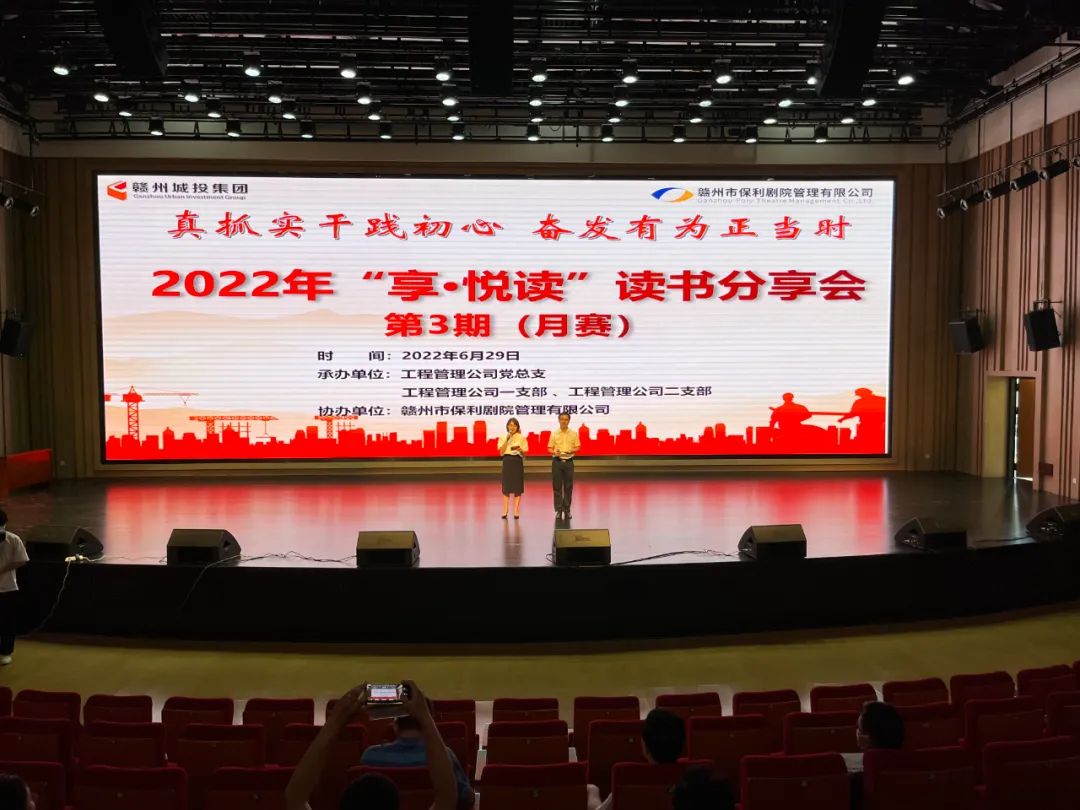 6月29日,贛州城投集團(tuán)黨委在贛州大劇院音樂廳舉辦第3期“享·悅讀”讀書分享會。本次讀書分享會由工程管理工程黨總支及所屬一、二支部承辦,贛州市保利劇院管理有限公司協(xié)辦。市國資委黨委委員、副主任王全生,贛州城投集團(tuán)黨委委員、總工程師王遠(yuǎn)平出席,工程管理公司所屬支部黨員、入黨積極分子等相關(guān)人員參加。