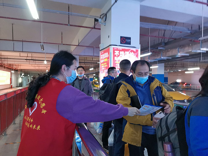 高鐵建投公司曾生香在贛州高鐵西站參加志愿服務(wù)活動,助力打造學(xué)雷鋒示范點(diǎn)的黨員服務(wù)窗口。
