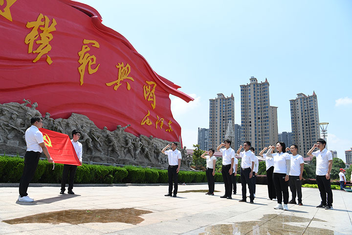 在將軍園三面軍旗及69位革命先烈沖鋒陷陣的大型群雕前,大家重溫入黨誓詞,鏗鏘誓言在將軍廣場回蕩,黨員們對(duì)自身的擔(dān)當(dāng)和使命都有了更加深刻的領(lǐng)悟。