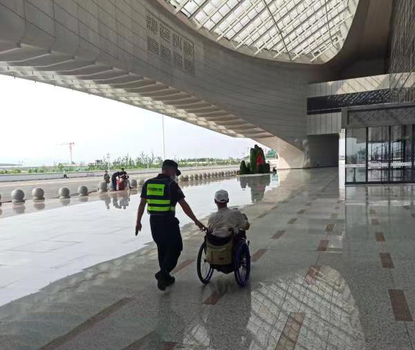 5月12日,支部黨員值班巡邏時(shí),發(fā)現(xiàn)一名殘疾人士坐著輪椅尋找進(jìn)站口,看見(jiàn)龐大的西站各條通道,這位旅客顯得有點(diǎn)焦急,秩序組長(zhǎng)幸慶華趕緊小跑過(guò)去,耐心的詢問(wèn)旅客的需要,指引旅客進(jìn)站路線,為保證旅客安全,一直護(hù)送到了進(jìn)站口,到達(dá)進(jìn)站口時(shí),旅客握住工作人員的手連聲道謝。