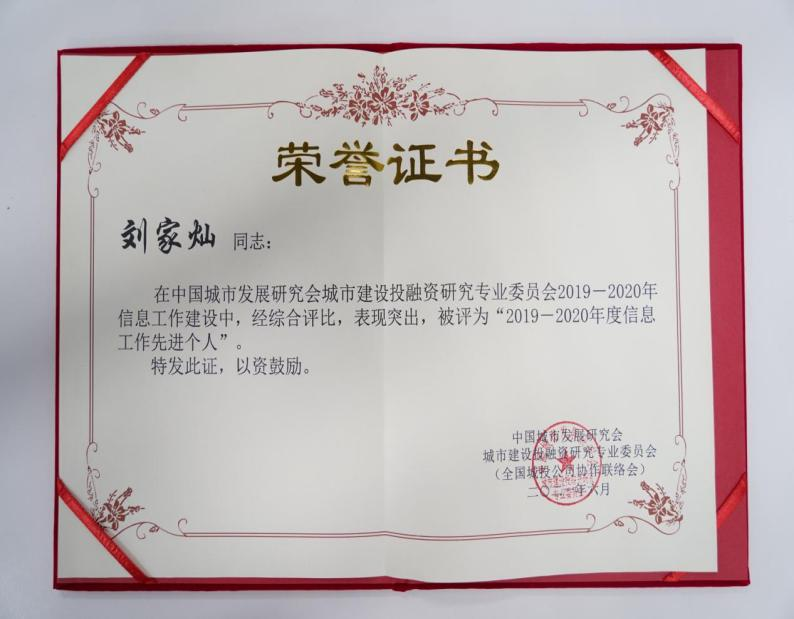 近日,中國城市發(fā)展研究會城市建設(shè)投融資研究專業(yè)委員會暨全國城投公司協(xié)作聯(lián)絡(luò)會(以下簡稱“全國城投協(xié)會”)2020-2021年信息工作會議在天津召開,贛州城投集團(tuán)被全國城投協(xié)會授予“2019-2020年度信息工作先進(jìn)單位”稱號,集團(tuán)文化宣傳部劉家燦同志被授予“2019-2020年度信息工作先進(jìn)個(gè)人”稱號,這是全國城投協(xié)會對集團(tuán)2019-2020年度信息工作的高度肯定和認(rèn)可。