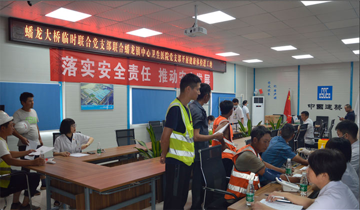 蟠龍大橋項目臨時聯合黨支部認真貫徹落實工程管理公司黨總支相關精神及要求,深入項目一線全方位開展黨史學習教育活動,并將黨史學習成效轉化為高質量推動項目建設的動力源泉,同時積極開展夏季給一線工人送清涼、聯合蟠龍鎮(zhèn)衛(wèi)生院黨支部給一線工人健康體檢等“我為群眾辦實事”實踐活動,在烈日炎炎下,進一步凝聚了人心,鼓舞了士氣,項目參建各方全體成員將以更加飽滿的熱情、高昂的斗志,為進一步完善贛州城市路網結構,提升贛州城市形象貢獻一份力量。下一步,蟠龍大橋項目臨時聯合黨支部將繼續(xù)發(fā)揮戰(zhàn)斗堡壘作用和黨員先鋒模范作用,做表率、勇擔當,沖刺今年9月中旬重大節(jié)點目標——鋼結構頂推施工。