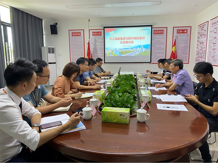 7月7日上午,九江市城市發(fā)展集團(tuán)有限公司副總經(jīng)理彭平江一行到贛州城投集團(tuán)考察交流,考察借鑒贛州西站站前廣場建設(shè)及運營管理等經(jīng)驗做法。贛州城投集團(tuán)黨委副書記黃家偉會見了彭平江副總經(jīng)理一行。集團(tuán)工程管理部、高鐵建投公司相關(guān)人員陪同交流。