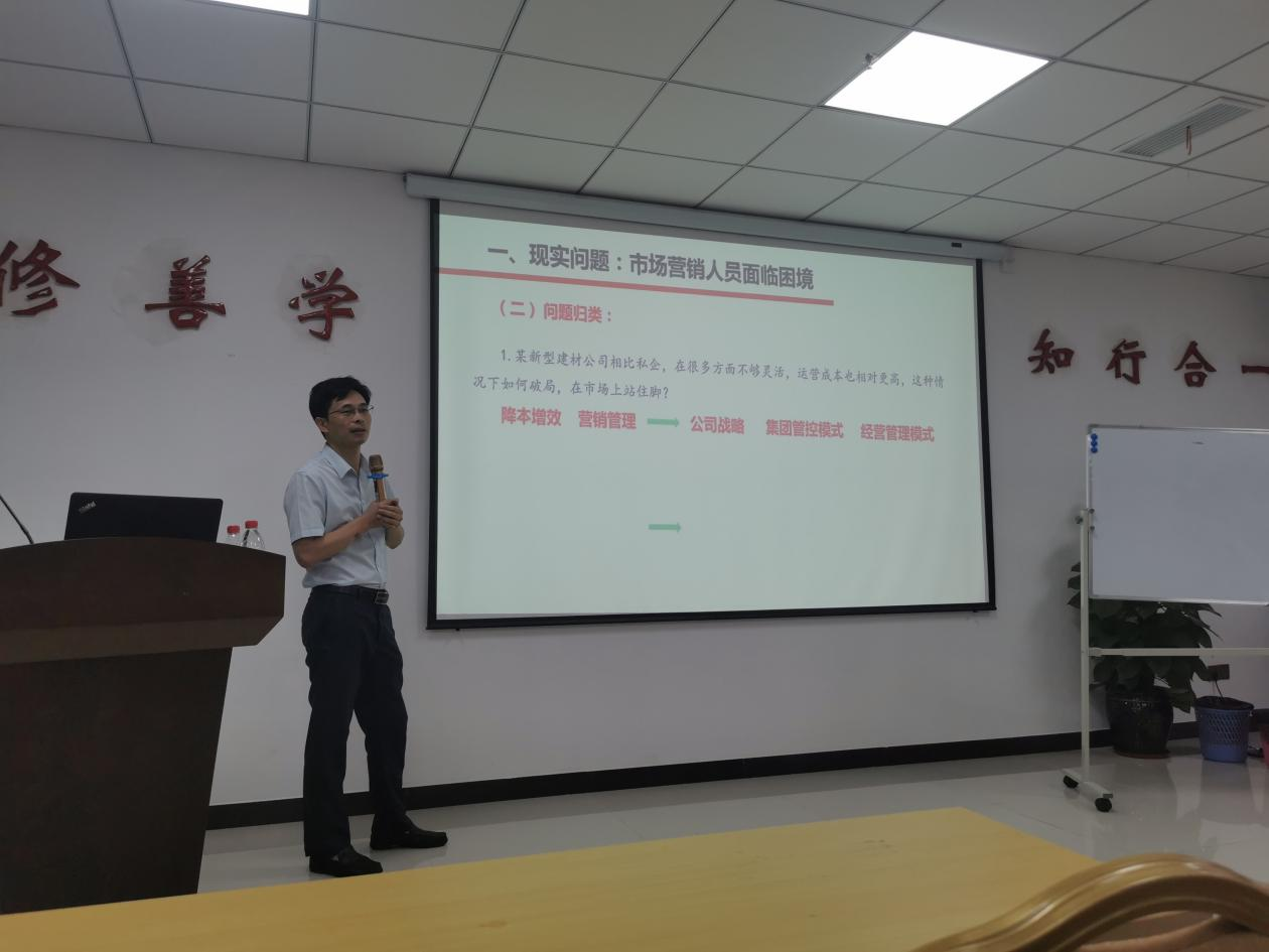 在培訓(xùn)會上,鄒國良教授闡述了市場營銷人員面臨的困境、全面梳理了目前公司發(fā)展可能存在的問題,從業(yè)績持續(xù)改善及市場營銷方面作為突破口,提出了破解問題的工作方法及應(yīng)用。課堂上,為活躍學(xué)習(xí)氣氛,鄒國良教授與學(xué)員進(jìn)行互動探討,并對提出的問題進(jìn)行了細(xì)致解答。