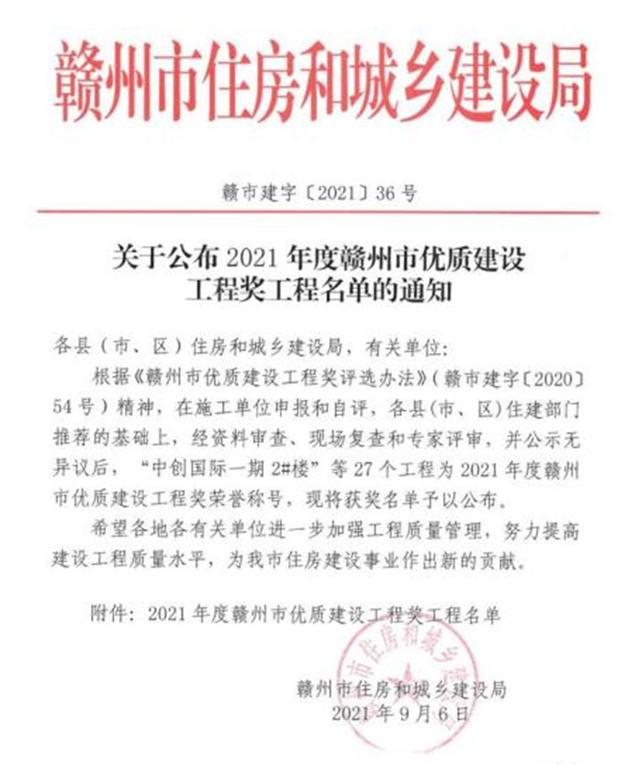 日前,贛州市住房和城鄉(xiāng)建設(shè)局公布了2021年度贛州市優(yōu)質(zhì)建設(shè)工程獎(jiǎng)工程名單,由贛州城投集團(tuán)承建的贛南職業(yè)技術(shù)學(xué)院、贛州市中心城區(qū)贛南大道快速路工程一標(biāo)段(新世紀(jì)大橋至章江大橋西側(cè))、贛州市迎賓大道(含飛翔路段)及文明大道快速路工程二標(biāo)段、高架主干路網(wǎng)建設(shè)工程(贛州市客家大道西延高架段)、東江源大道北延(105國道和樂段)市政道路工程共5個(gè)項(xiàng)目獲獎(jiǎng)。