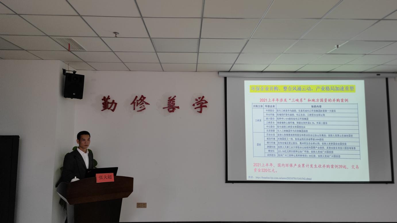 張教授詳細闡述了目前國內(nèi)環(huán)保產(chǎn)業(yè)發(fā)展態(tài)勢,從環(huán)保產(chǎn)業(yè)方向、集聚區(qū)域、企業(yè)規(guī)模等方面指出了國有企業(yè)在環(huán)保產(chǎn)業(yè)領(lǐng)域的優(yōu)勢與劣勢,為集團生態(tài)板塊發(fā)展提出深耕精細化、系統(tǒng)化運營等建設(shè)性建議。期間,參訓(xùn)人員還與張教授就贛州市域農(nóng)村生活污水處理工藝及市場發(fā)展?fàn)顩r進行了深入的探討與交流。
