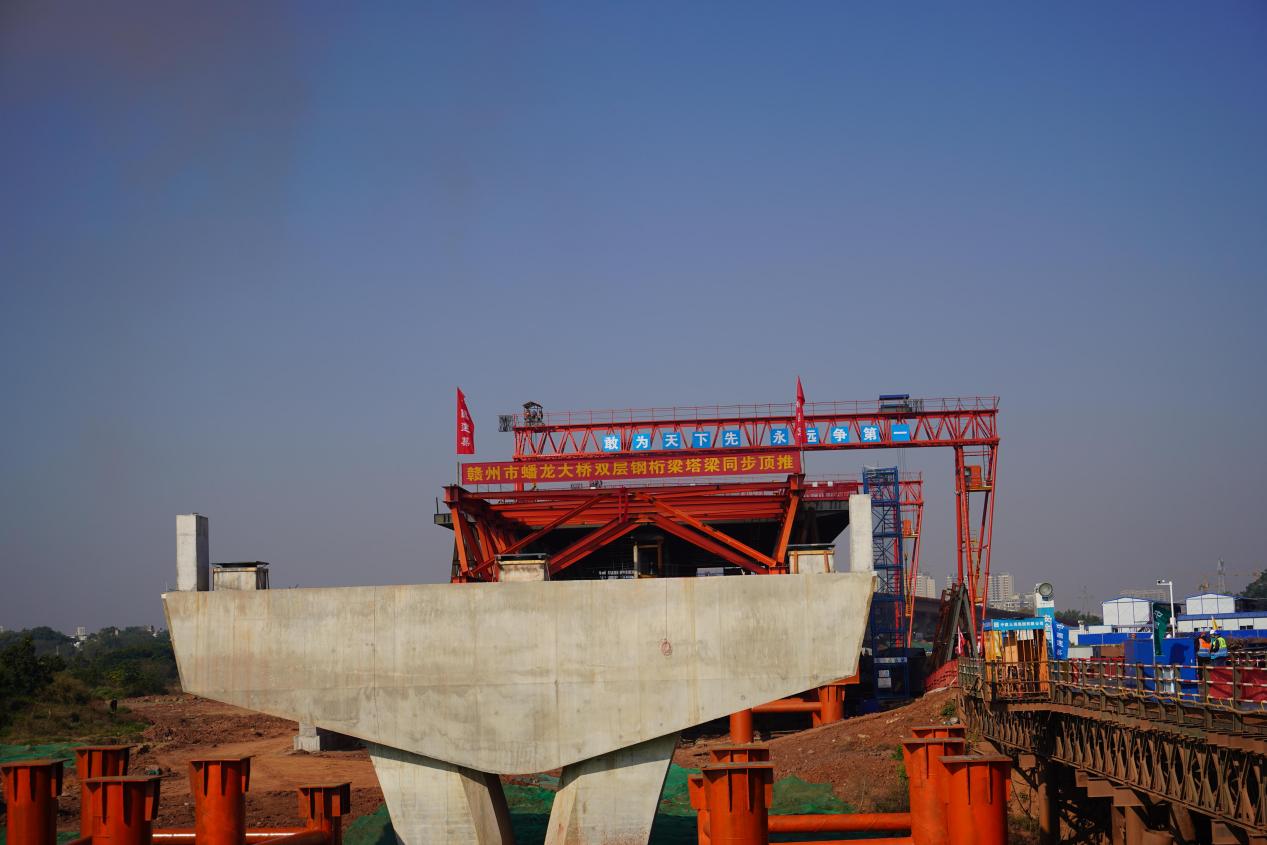 12月6日,贛州市蟠龍大橋項(xiàng)目主橋鋼結(jié)構(gòu)首次頂推啟動,為主橋的順利推進(jìn)打下堅實(shí)基礎(chǔ),標(biāo)志著該項(xiàng)目取得了全市重點(diǎn)項(xiàng)目建設(shè)百日攻堅活動任務(wù)目標(biāo)的節(jié)點(diǎn)性勝利。贛州經(jīng)濟(jì)技術(shù)開發(fā)區(qū)住房和建設(shè)局,贛州城投工程管理公司、中建三局總承包公司等參建各單位代表共計60余人參加頂推啟動活動。