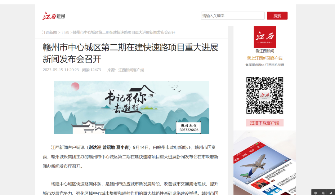 近日,市政府新聞辦、市國資委、贛州城投集團聯(lián)合召開贛州市中心城區(qū)第二期在建快速路項目重大進展新聞發(fā)布會,介紹了黃金大道、贛南大道四標等一批快速路的最新進展情況,江西新聞客戶端、大江網(wǎng)、今視頻、江南都市報、鳳凰新聞、贛南日報、贛州廣播電視臺等多家媒體紛紛聚焦報道贛州市6條在建快速路項目建設最新成效進展。