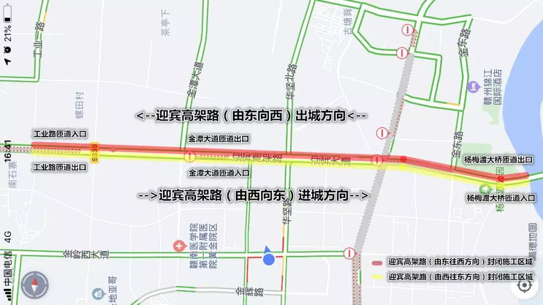 因東江源大道快速路將施工上跨迎賓高架橋主線的鋼混梁,主要施工工序有搭設(shè)鋼梁拼裝平臺、吊裝鋼梁、焊接鋼梁、滑移鋼梁就位等,屆時將影響迎賓高架橋通行安全,需臨時封閉迎賓高架橋部分路段。