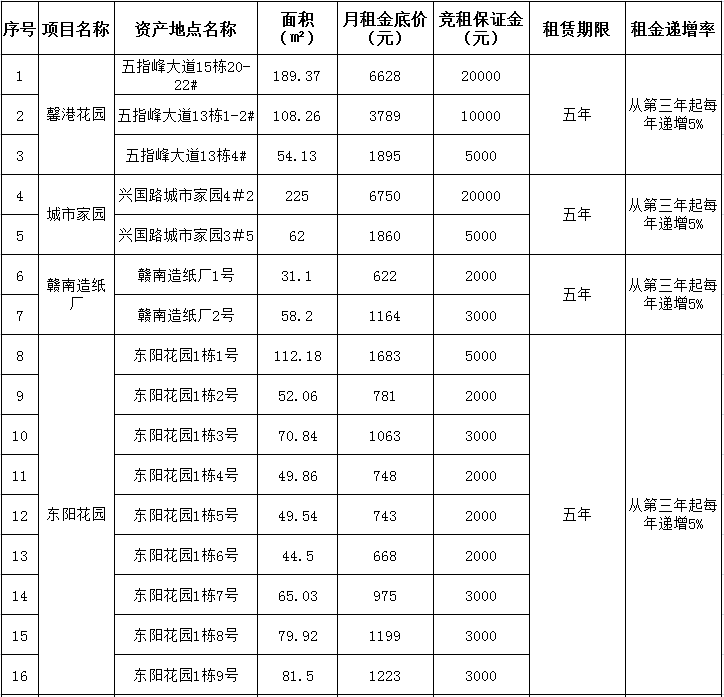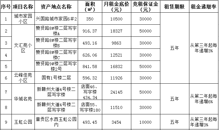 贛州振興實業(yè)有限責任公司委托江西潤資拍賣有限公司,定于2020年10月27日10:00開始在贛州市公共資源交易中心(長征大道9號)進行國有資產公開招租,現歡迎符合條件的單位或個人前來報名參加競租。