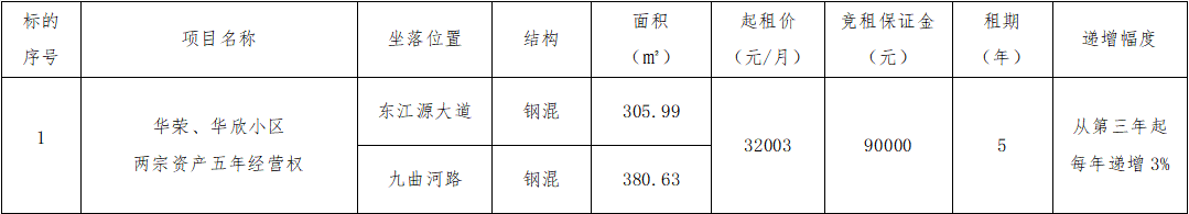 贛州振興實業(yè)有限責(zé)任公司委托江西江南拍賣有限公司,定于2021年12月21日15:00開始在江西省公共資源網(wǎng)絡(luò)交易服務(wù)平臺產(chǎn)權(quán)交易子系統(tǒng)通過網(wǎng)上競價公開招租華榮、華欣小區(qū)兩宗資產(chǎn)5年經(jīng)營權(quán),歡迎符合條件的單位和個人前來競租,現(xiàn)將有關(guān)事項公告如下: