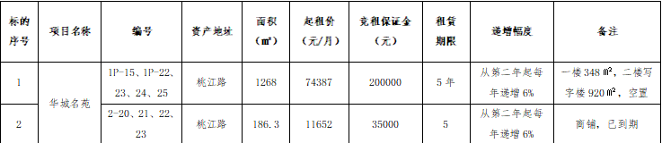 贛州振興實業(yè)有限責任公司委托江西江南拍賣有限公司,定于2021年11月23日15:00在贛州市公共資源交易中心公開招租贛州振興實業(yè)有限責任公司華城名苑資產(chǎn),歡迎符合條件的單位和個人前來競租,現(xiàn)將有關事項公告如下: