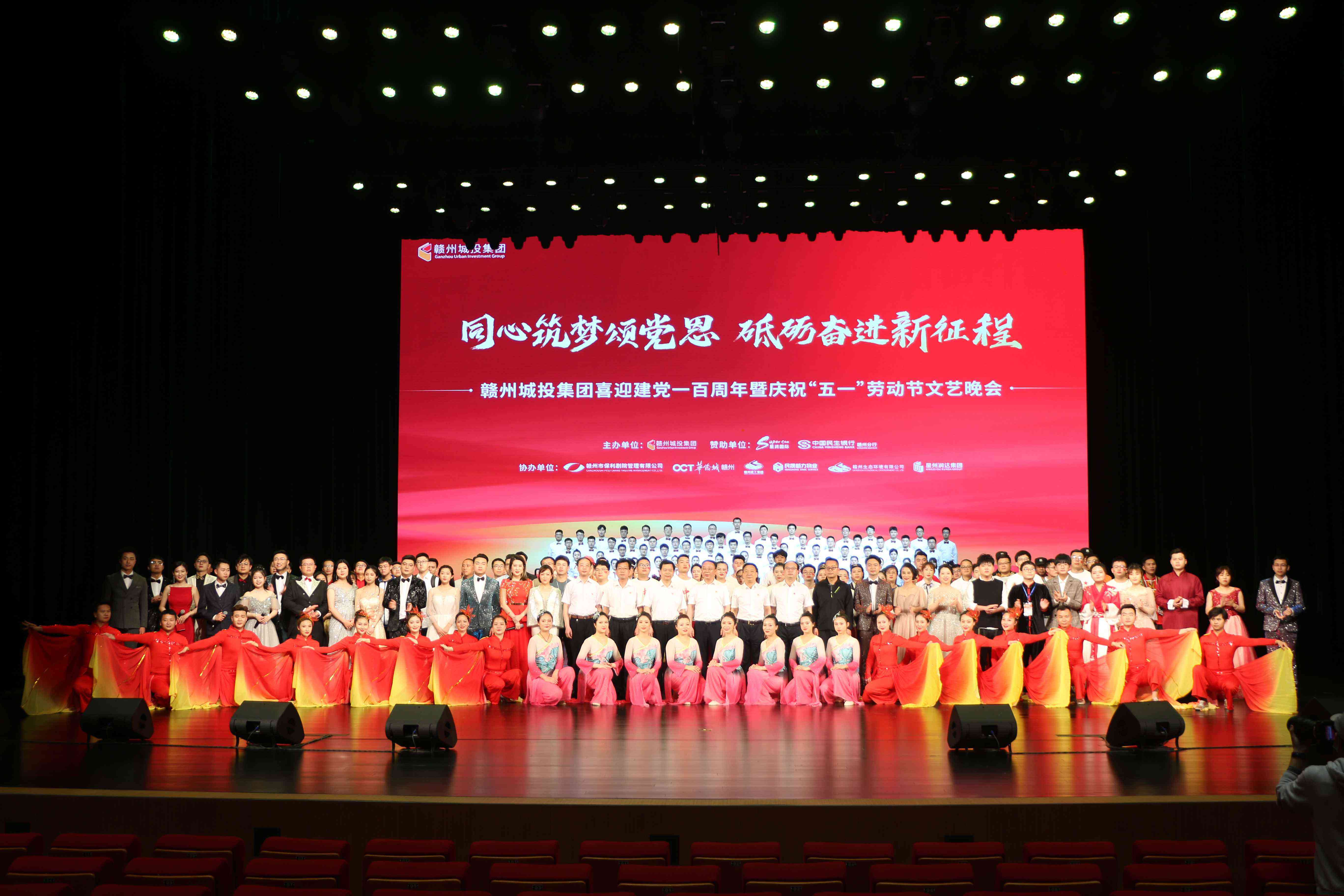 為深入學(xué)習(xí)貫徹習(xí)近平新時(shí)代中國(guó)特色社會(huì)主義思想和黨的十九屆五中全會(huì)精神,引導(dǎo)集團(tuán)廣大黨員學(xué)好百年黨史,傳承紅色基因,凝聚奮進(jìn)力量,大力弘揚(yáng)勞模精神、勞動(dòng)精神、工匠精神,號(hào)召?gòu)V大員工擔(dān)當(dāng)實(shí)干、攻堅(jiān)克難,共同唱響新時(shí)代奮斗者之歌,4月25日晚上,贛州城投集團(tuán)以“同心筑夢(mèng)頌黨恩,砥礪奮進(jìn)新征程”為主題,在新落成的贛州大劇院舉辦喜迎建黨一百周年暨慶?!拔逡弧眲趧?dòng)節(jié)文藝晚會(huì)。