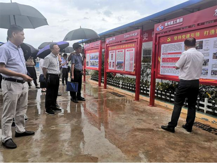 此次現(xiàn)場觀摩交流會采取“現(xiàn)場觀摩+交流座談”的形式進行。與會人員先后來到黨支部和樂圍砂廠、高鐵西站、星洲萃苑(一期)項目等地觀摩,現(xiàn)場聽取新型建材公司、高鐵建投公司、贛州建工集團、集團財務(wù)管理部等黨支部推進黨史學(xué)習(xí)教育、“黨建+”等工作的進展與成效。每到一處,大家邊聽邊看、邊想邊悟,并現(xiàn)場進行座談交流,暢所欲言,幫助梳理特色亮點,查找問題差距,有針對性地提出對策建議。
