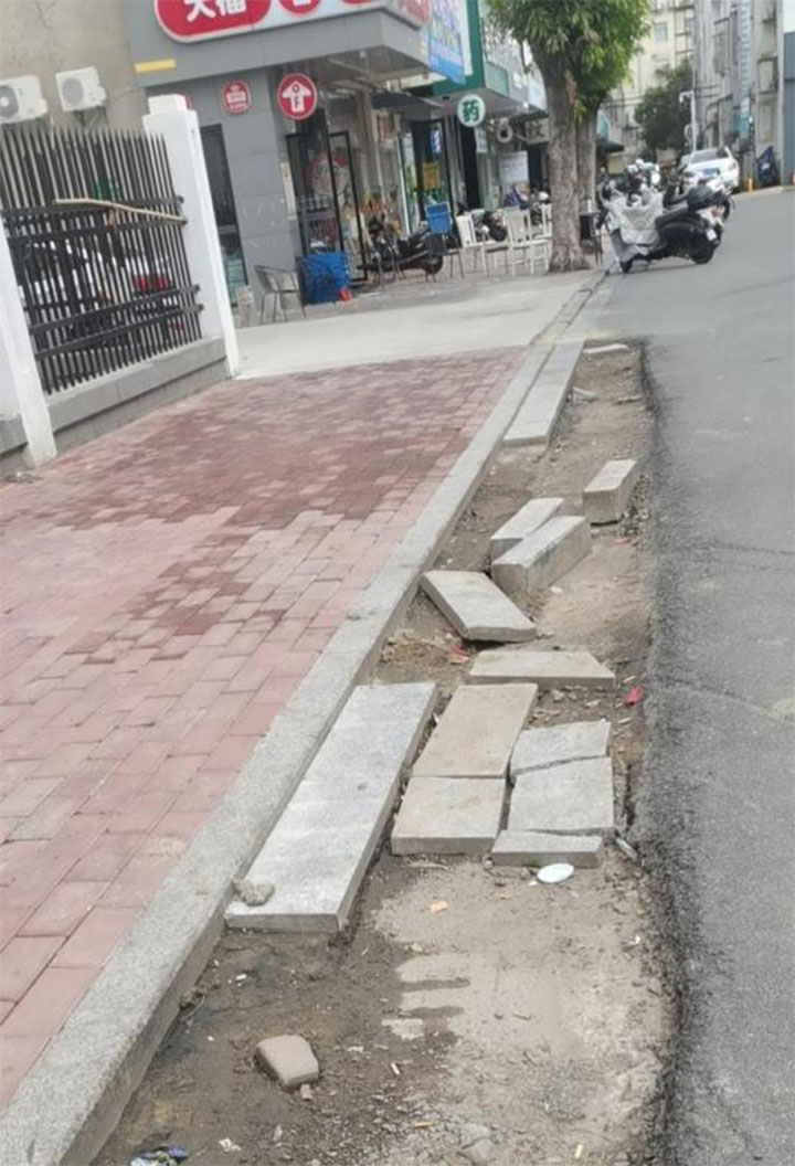 接市民反映,章江新區(qū)返遷房H4地塊臨石城路部分道路設(shè)施缺失,影響出行,存在安全隱患。工程管理公司黨總支立即組織項(xiàng)目管理人員赴現(xiàn)場(chǎng)核實(shí),發(fā)現(xiàn)H4地塊紅線外有長(zhǎng)30米,寬0.3米的路段未攤鋪瀝青砼。經(jīng)了解,由于2018年石城路“白改黑”施工期間,因H4地塊在施工過(guò)程中沿人行道邊緣設(shè)置了臨時(shí)圍擋,導(dǎo)致攤鋪機(jī)無(wú)法通過(guò)進(jìn)行攤鋪瀝青。