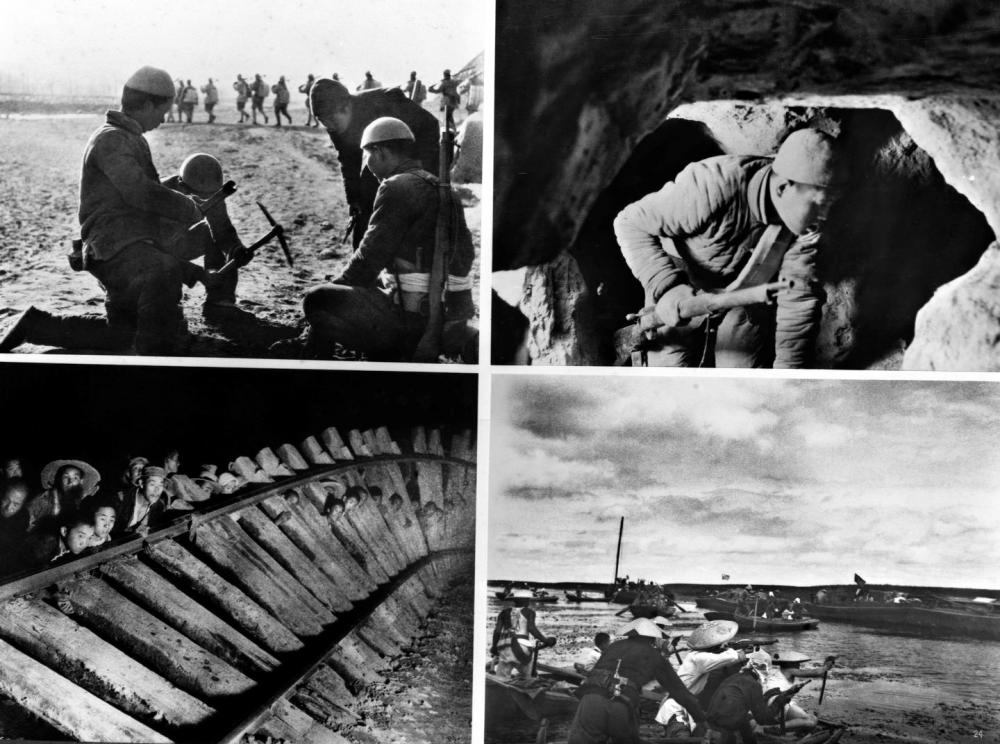 在抗日斗爭中,華北平原敵后軍民創(chuàng)造了很多有效的殲敵方法,發(fā)展了人民戰(zhàn)爭的戰(zhàn)略戰(zhàn)術。上圖左:地雷戰(zhàn)。上圖右:地道戰(zhàn)。下圖左:破襲戰(zhàn)。下圖右:水上游擊戰(zhàn)(資料照片)。新華社發(fā)