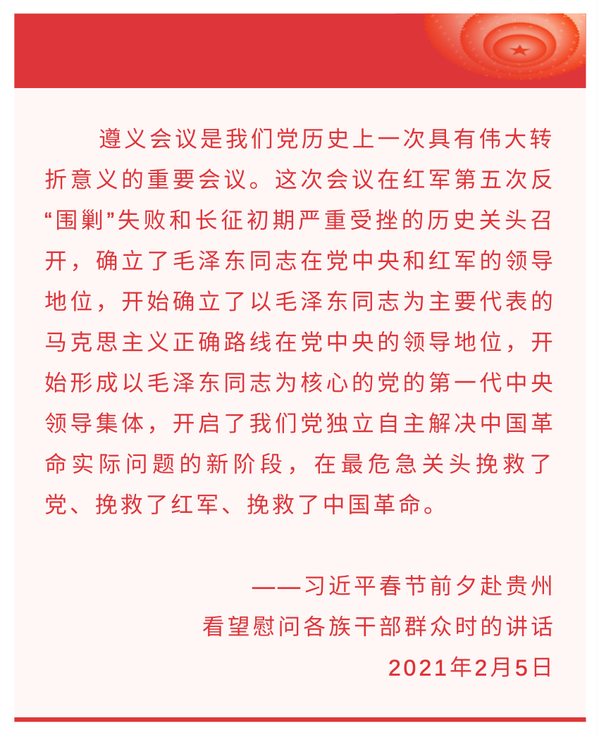遵義會(huì)議是黨的歷史上一個(gè)生死攸關(guān)的轉(zhuǎn)折點(diǎn)。遵義會(huì)議后,中央紅軍在毛澤東等指揮下,根據(jù)實(shí)際情況的變化,靈活變換作戰(zhàn)方向,迂回穿插于敵人重兵之間,于5月上旬渡過金沙江。至此,中央紅軍擺脫幾十萬國民黨軍隊(duì)的圍追堵截,粉碎了蔣介石圍殲紅軍于川黔滇邊境的計(jì)劃,取得了戰(zhàn)略轉(zhuǎn)移中具有決定意義的勝利。